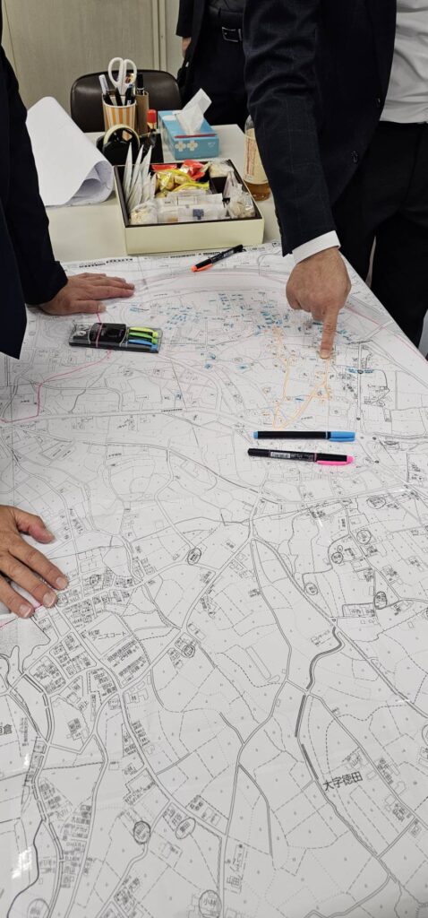 地図を囲みながら、下徳田方面から回る計画を立てています。