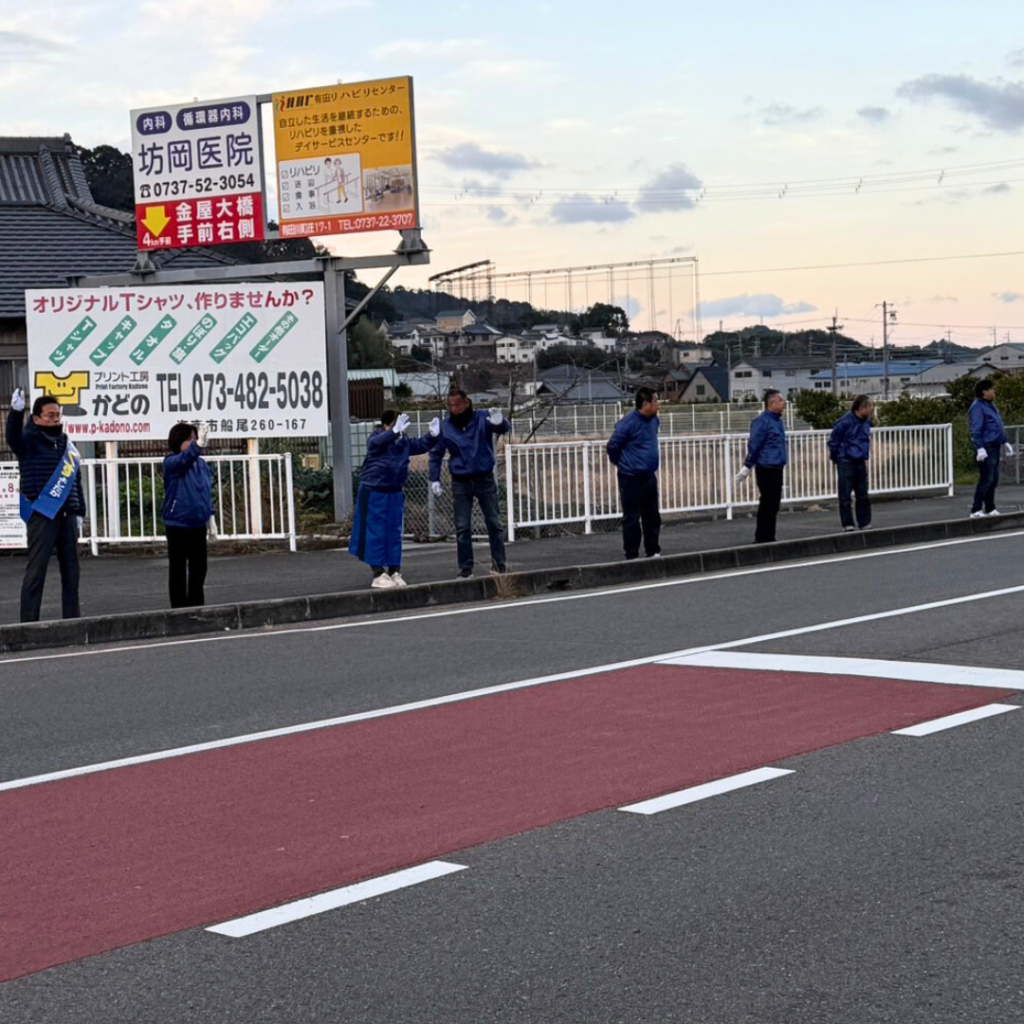 支援者の皆さまとともに朝のあいさつ活動を行いました。