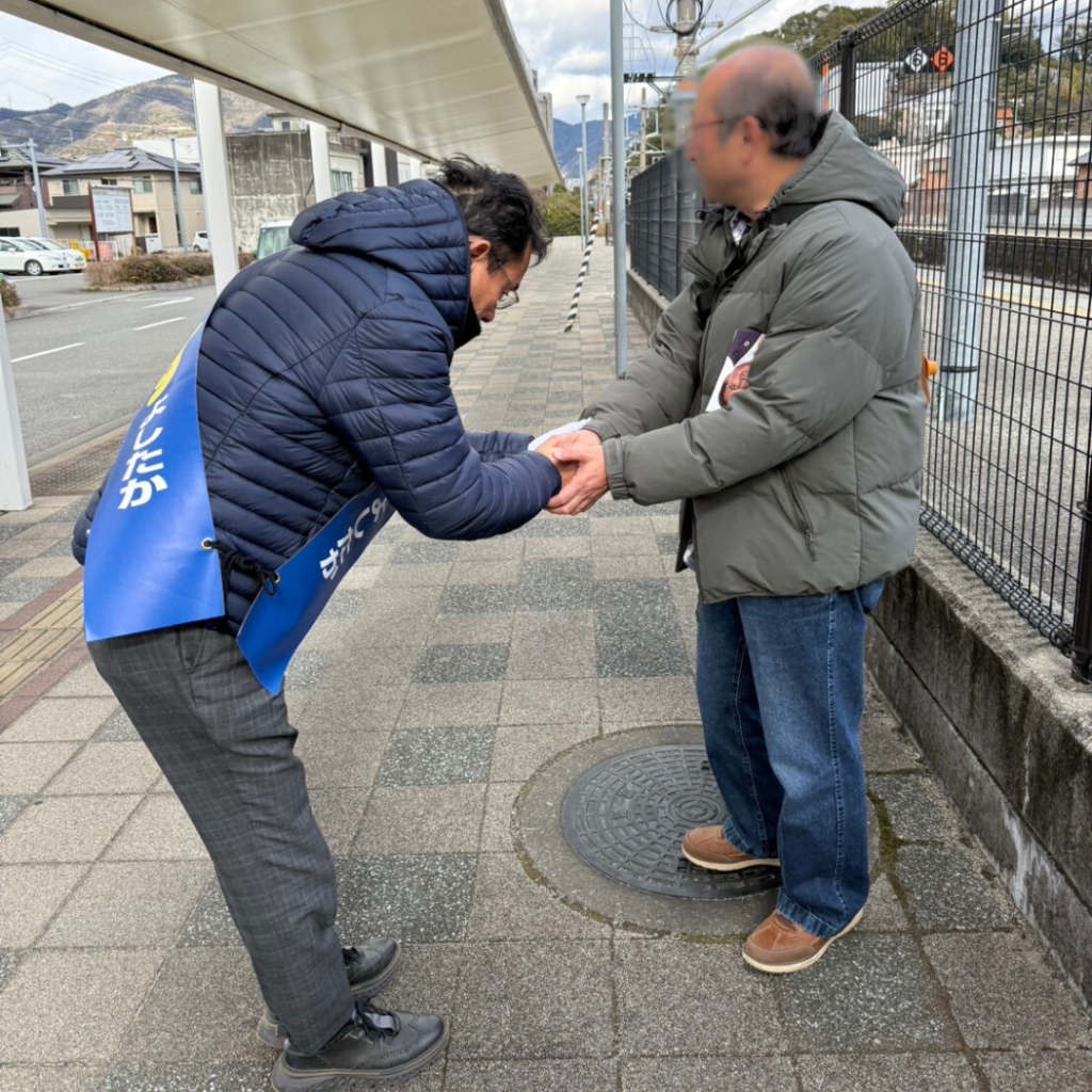 本日午後からは、藤並駅西口、田角公民館前、松源吉備店にて街頭演説を行いました。