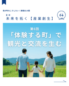 第2章:未来を拓く【産業創生】第6回|「体験する町」で観光と交流を生む 有田川町の自然・食・文化を活かして、町を訪れる人が“体験”で魅力を感じる仕掛けをつくります。農業体験、食文化体験、地元祭りなど、町ぐるみの交流で笑顔 […]