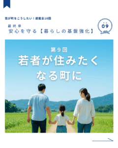 第3章:安心を守る【暮らしの基盤強化】第7回|誰もが安心して移動できる町へ 「アプリで呼べる乗り合いタクシー」を導入し、移動の自由を支えます。高齢者や学生、子育て世代まで、誰もが便利に使える交通を。小さな不便を見逃さず、 […]